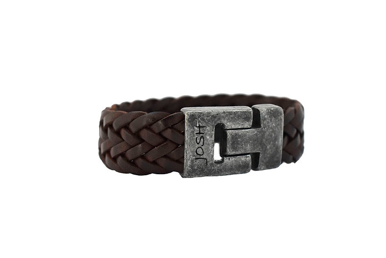 Deze mooie armband in bruin gevlochten leer met vintage black slot is echt heel stoer.in verschillende lengtes verkrijgbaar.